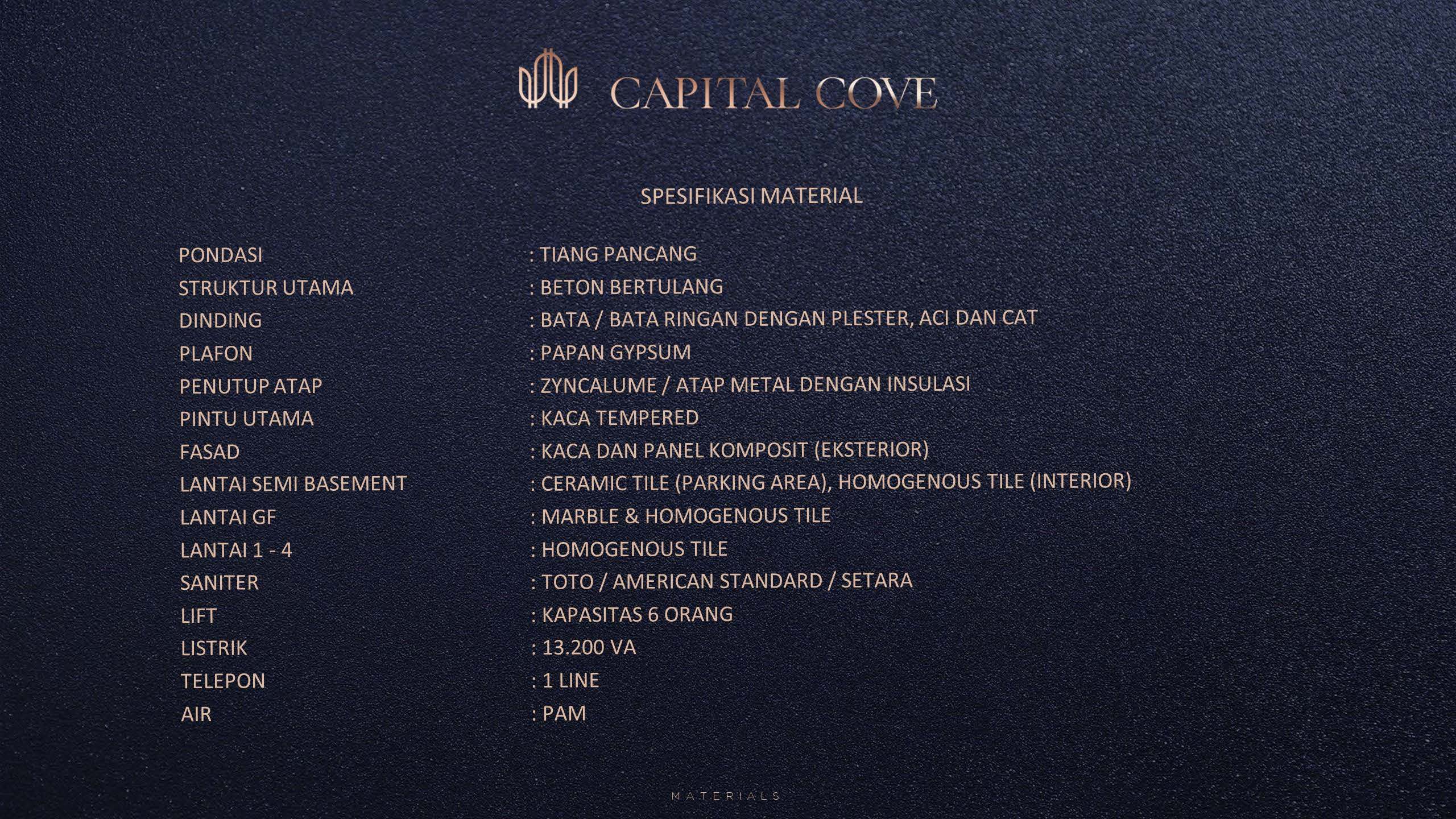 Capital Cove BSD City dipasarkan dengan bermacam fitur yang berbeda. Selain memberikan pilihan yang berbeda sesuai kebutuhan, tentunya menentukan harga jualnya. Berikut beberapa fitur yang ditawarkan.