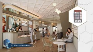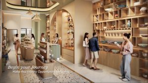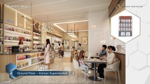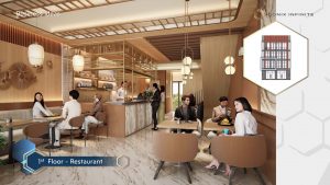 Lantai dasar dirancang sebagai area komersial (toko, kafe, restoran).